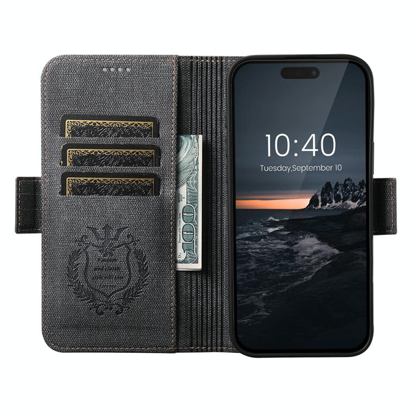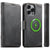 For iPhone 13 Pro Max Suteni J07 Multi-functional Horizontal MagSafe Denim Leather Phone Case(Black)