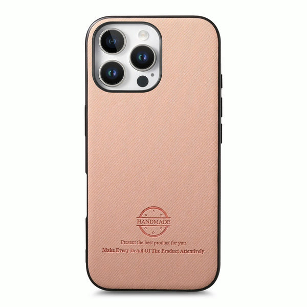 For iPhone 13 Pro Max Twill Fabric Leather Skin Back Phone Case(Pink)
