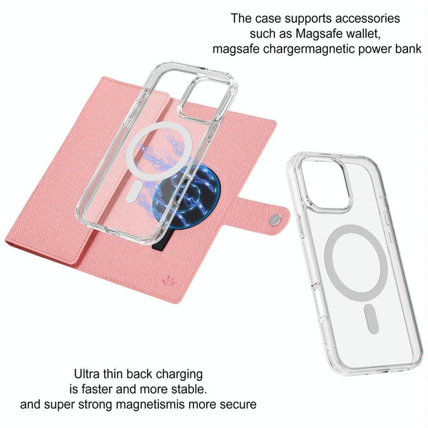 For iPhone 13 Pro Max ViLi GBS-C Series MagSafe Magnetic RFID Leather Flip Phone Case(Pink)