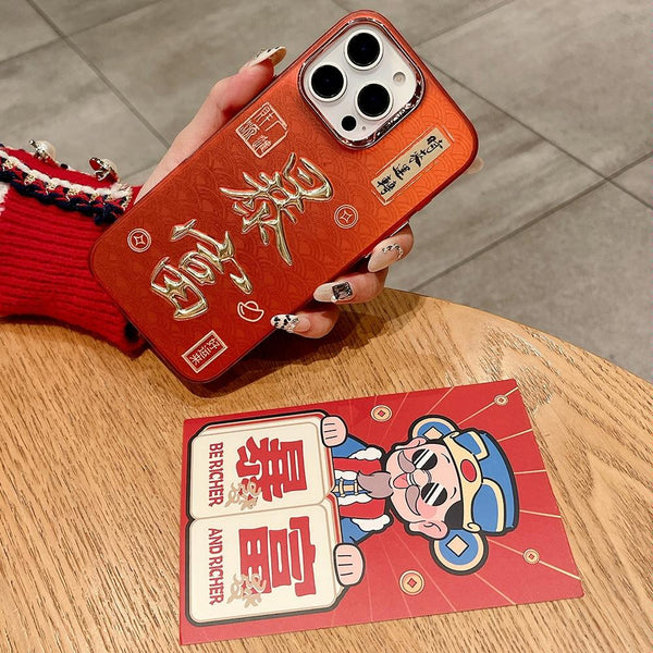 For iPhone 13 Pro New Year Design 3D Gold Stamping IMD Phone Case(Good Luck)