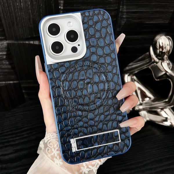 For iPhone 13 Pro Pebble Pattern PU MagSafe Phone Case with Holder(Blue)