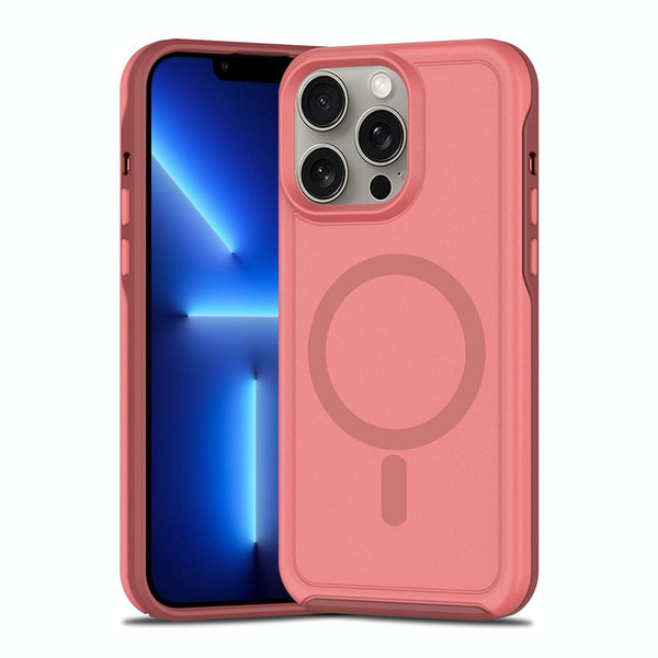 For iPhone 13 Pro Shockproof MagSafe Armor PC Hybrid TPU Phone Case(Dark Pink+Maroon)