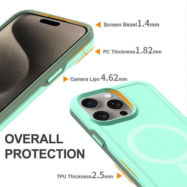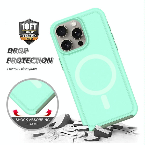 For iPhone 13 Pro Shockproof MagSafe Armor PC Hybrid TPU Phone Case(Mint Green+Grayish Green)