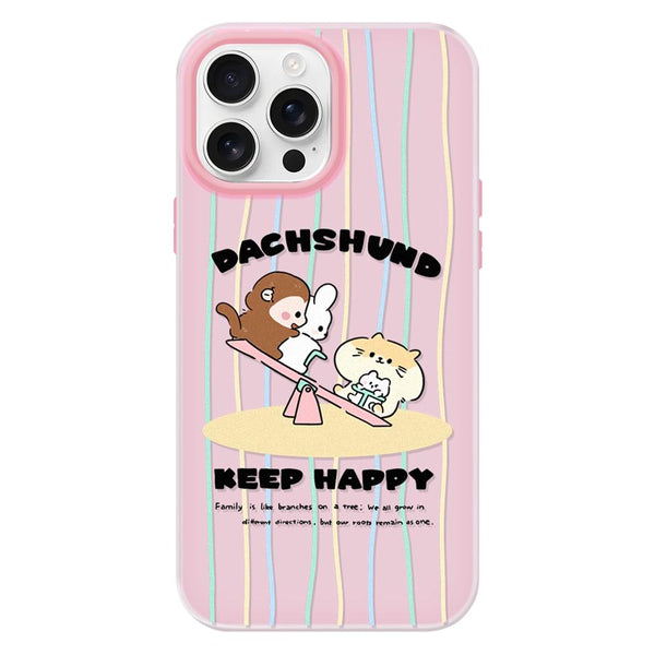 For iPhone 13 Pro Skin Feeling Jelly TPU Hybrid PC Phone Case(Seesaw Animal Pink)