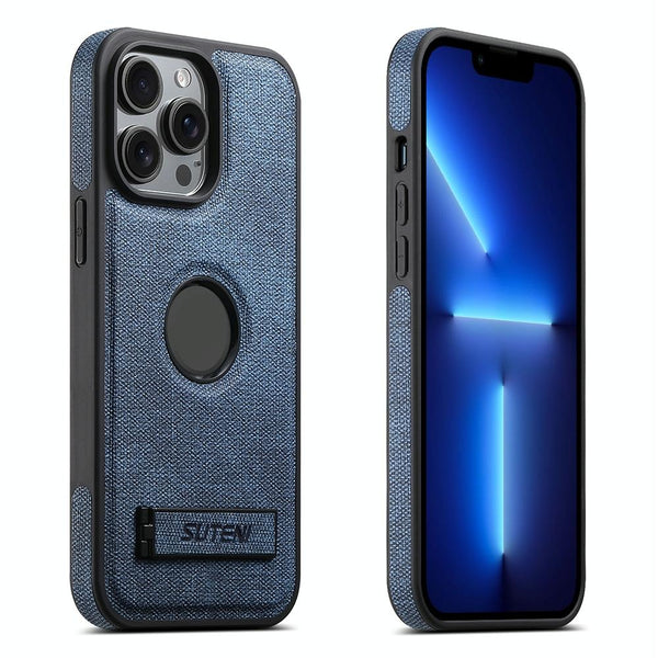 For iPhone 13 Pro Suteni G2 Holder Denim Leather Back MagSafe Phone Case(Blue)