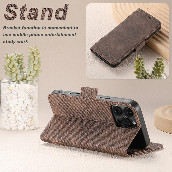 For iPhone 13 Pro Suteni J07 Multi-functional Horizontal MagSafe Denim Leather Phone Case(Brown)