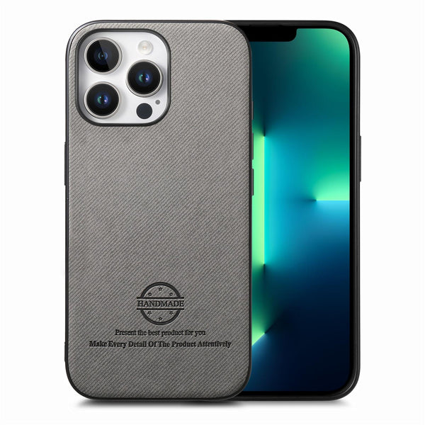 For iPhone 13 Pro Twill Fabric Leather Skin Back Phone Case(Gray)