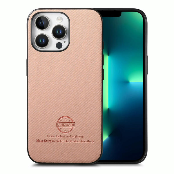 For iPhone 13 Pro Twill Fabric Leather Skin Back Phone Case(Pink)