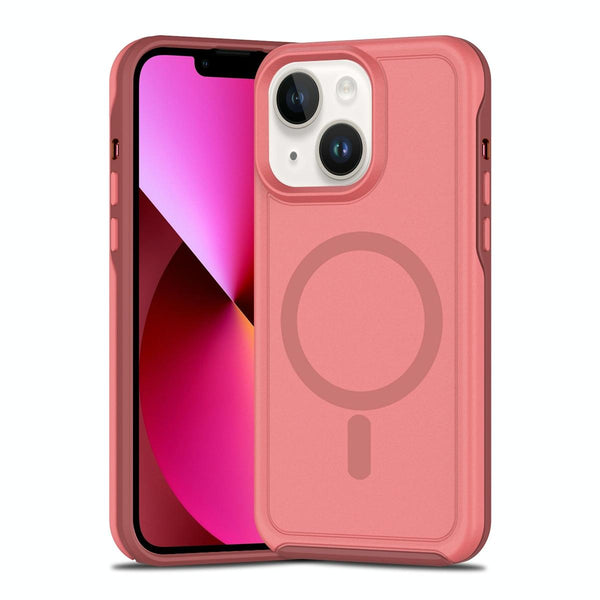 For iPhone 13 Shockproof MagSafe Armor PC Hybrid TPU Phone Case(Dark Pink+Maroon)