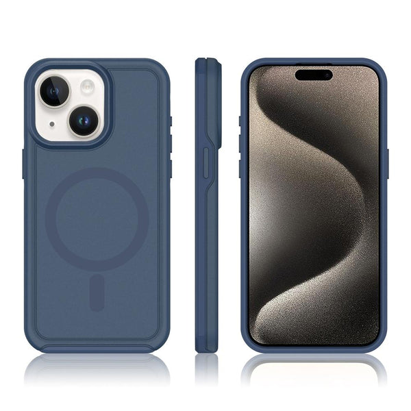 For iPhone 13 Shockproof MagSafe Armor PC Hybrid TPU Phone Case(Ink Blue)