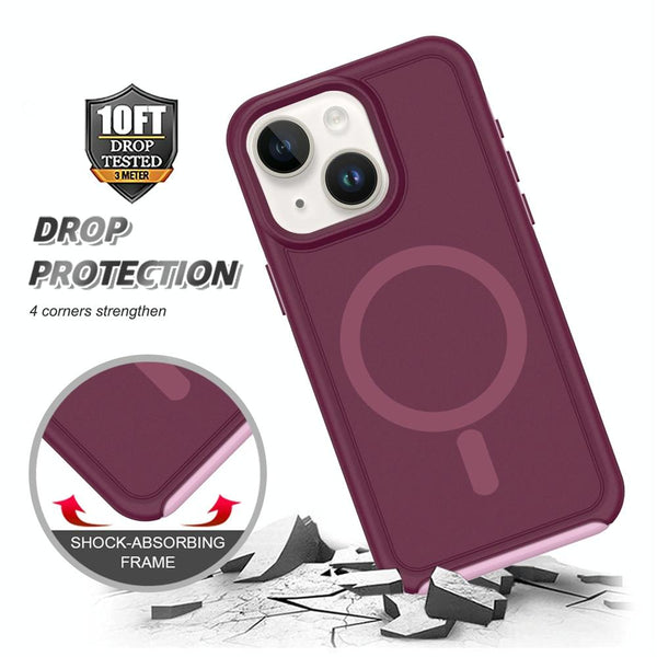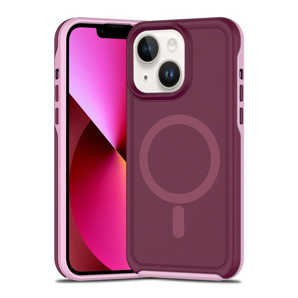 For iPhone 13 Shockproof MagSafe Armor PC Hybrid TPU Phone Case(Wine Red+Light Pink)