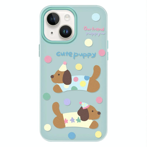 For iPhone 13 Skin Feeling Jelly TPU Hybrid PC Phone Case(Cute Puppy Light Green)