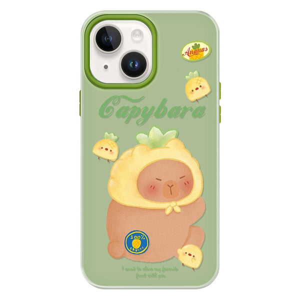 For iPhone 13 Skin Feeling Jelly TPU Hybrid PC Phone Case(Pineapple Capybara Green)