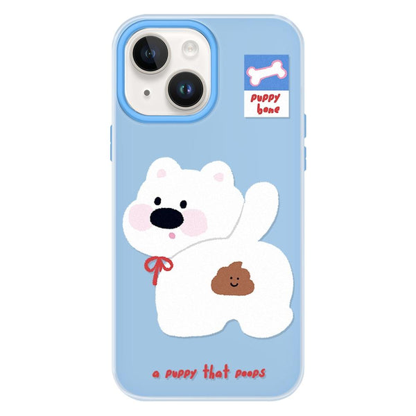 For iPhone 13 Skin Feeling Jelly TPU Hybrid PC Phone Case(Pooping Puppy Blue)
