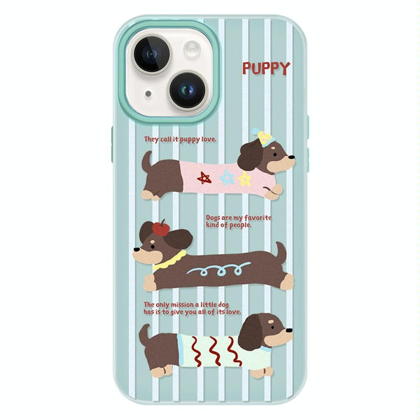 For iPhone 13 Skin Feeling Jelly TPU Hybrid PC Phone Case(Striped Dachshund Light Green)