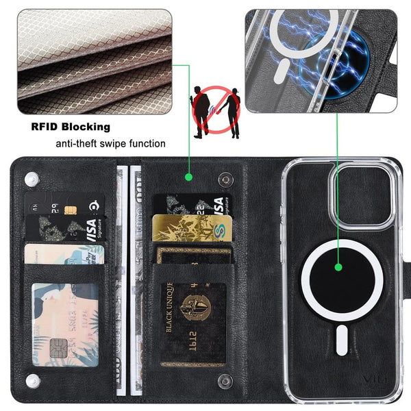 For iPhone 13 ViLi GVS-C Series MagSafe Magnetic RFID Leather Flip Phone Case(Black)