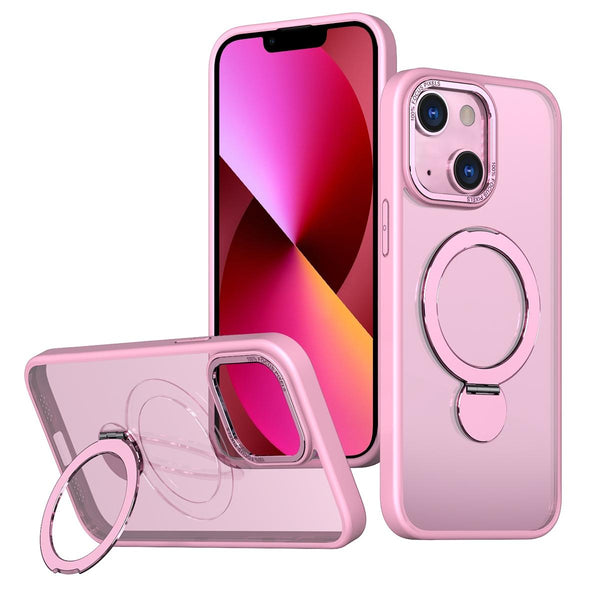 For iPhone 13 Wing Series Gen2 MagSafe Metal Ring Holder Phone Case(Pink)