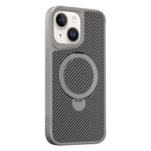 For iPhone 14 / 13 Carbon Fiber Texture 360 MagSafe Holder Phone Case(Titanium Gray)