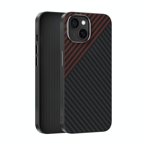 For iPhone 14 ABEEL C Carbon Fiber Series 6D Micro Relief MagSafe Phone Case(Black Red)