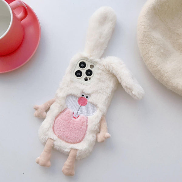 For iPhone 14 Cute Bucktooth Rabbit Plush TPU Phone Case(Beige)