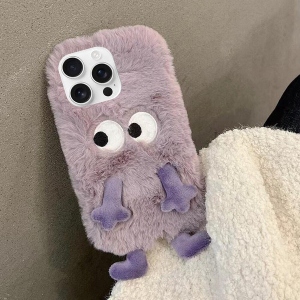 For iPhone 14 Cute Plush Squint Monster TPU Phone Case(Purple)
