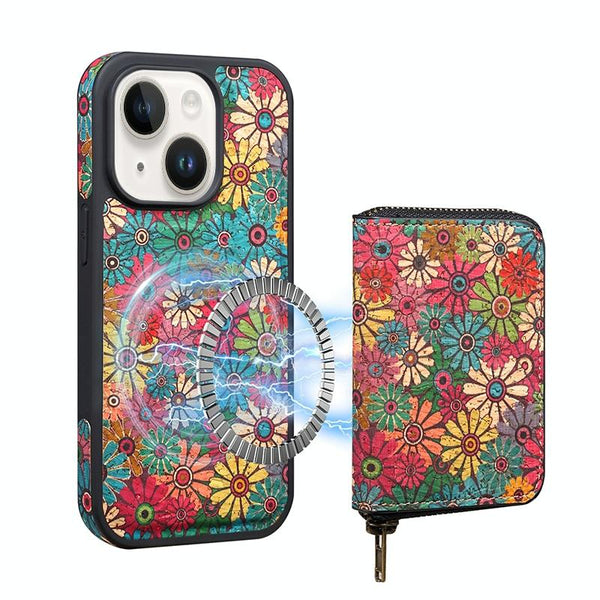 For iPhone 14 Denior D23 MagSafe Detachable Zipper Wallet Holder Phone Case(Green)