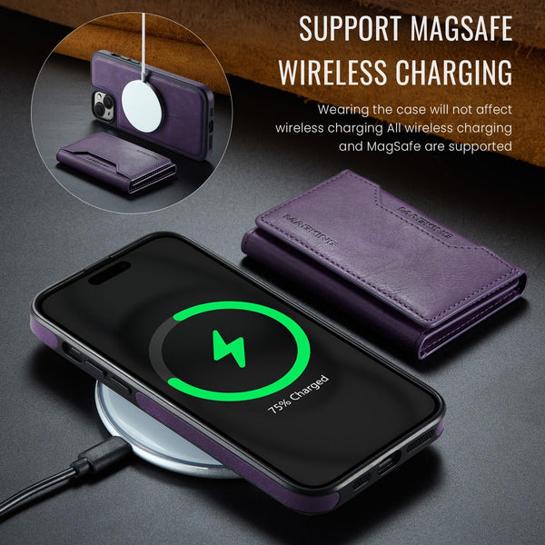 For iPhone 14 DG.MING MAGKING-K2 Series MagSafe RFID Card Bag Detachable Phone Case(Purple)
