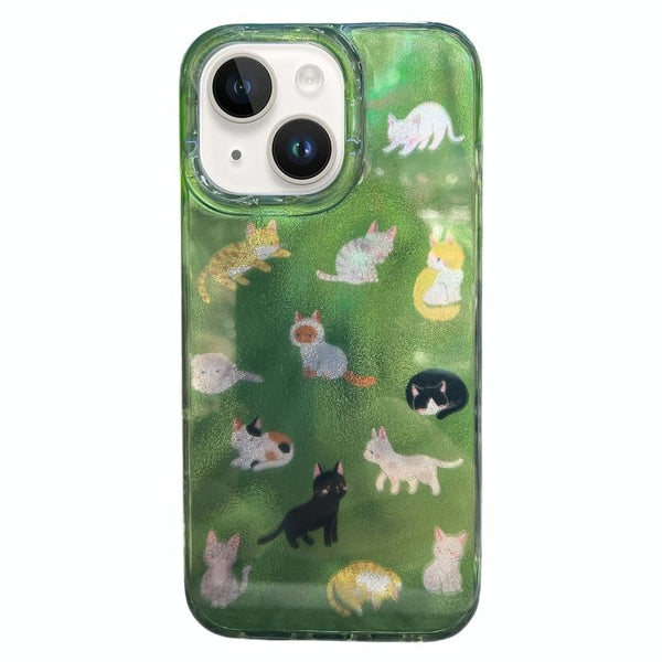 For iPhone 14 Double Layer IMD Pattern TPU Phone Case(Multiple Dark Green Cats)