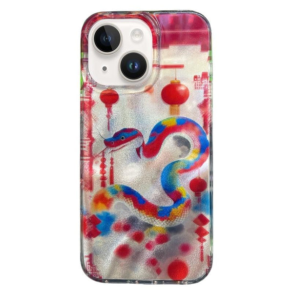 For iPhone 14 Double Layer IMD Pattern TPU Phone Case(New Year Snake)