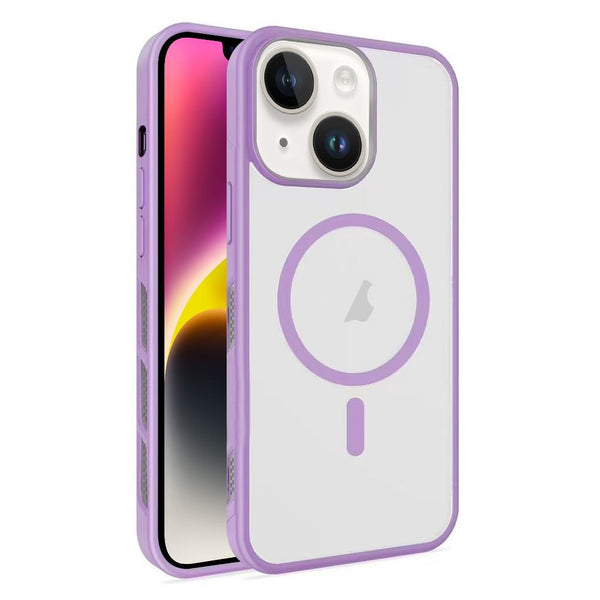 For iPhone 14 Frosted Translucent Side Ice Fog Cooling MagSafe Phone Case(Light Purple)
