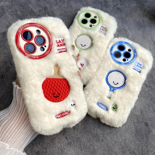 For iPhone 14 Fun Sports Plush Silicone Phone Case(Table Tennis)