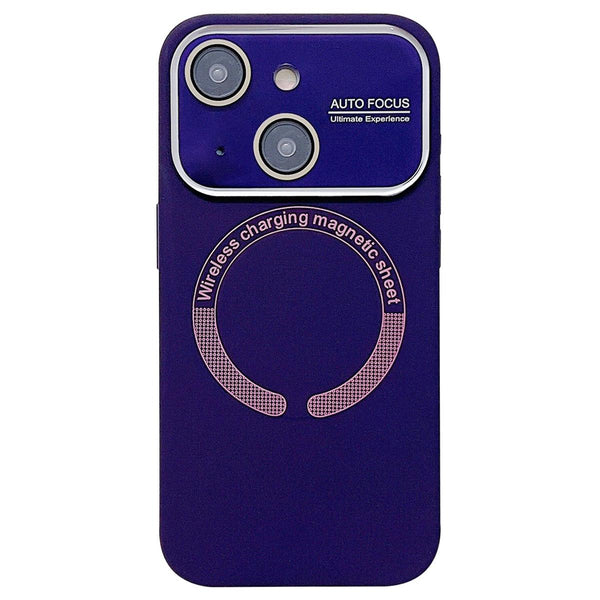 For iPhone 14 Large Window Acrylic Glass Lens MagSafe Silicone Phone Case(Dark Purple)