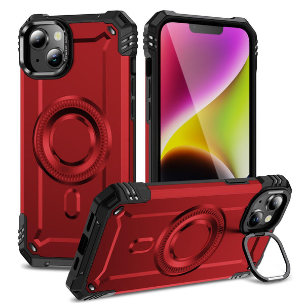 For iPhone 14 Lens Holder MagSafe Phone Case(Red)