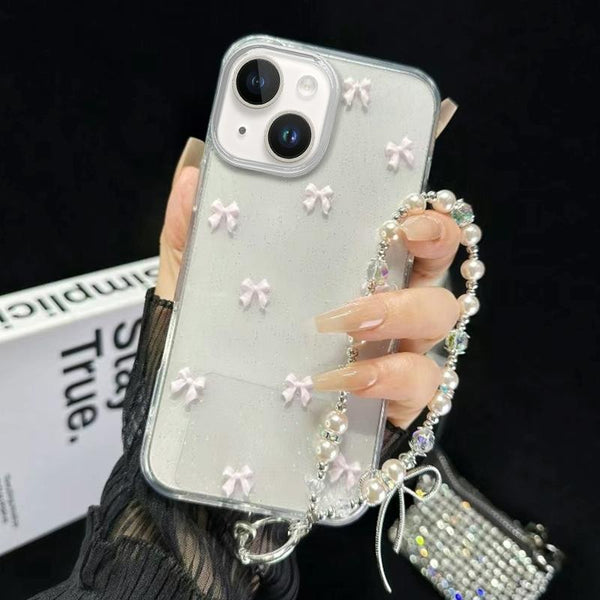 For iPhone 14 Little Fresh Bow Bracelet Chain TPU Phone Case(Pink)