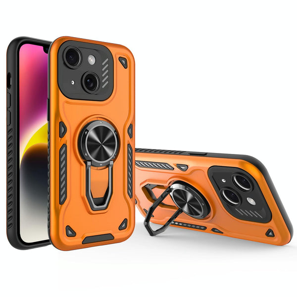 For iPhone 14 Metal Rotating Bracket TPU + PC Magnetic Phone Case(Orange)