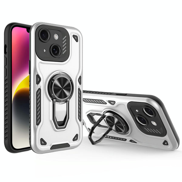 For iPhone 14 Metal Rotating Bracket TPU + PC Magnetic Phone Case(White)
