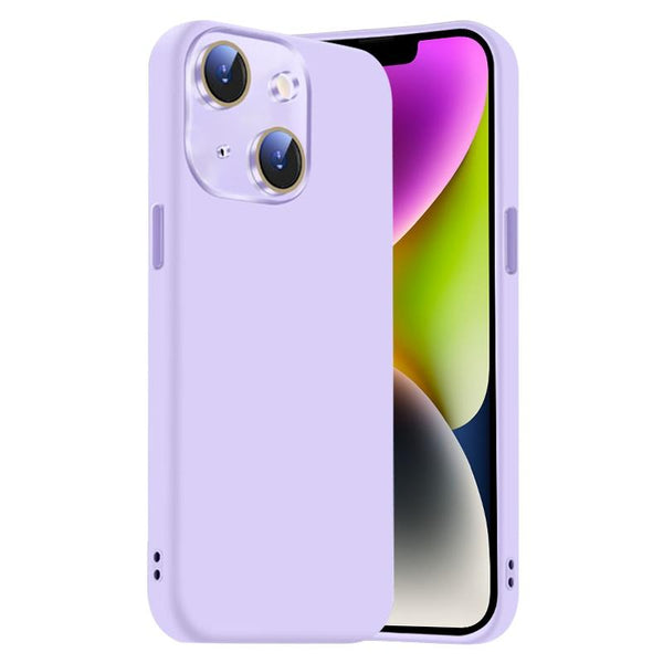 For iPhone 14 Nano Lens Cover Liquid Silicone Phone Case(Light Purple)
