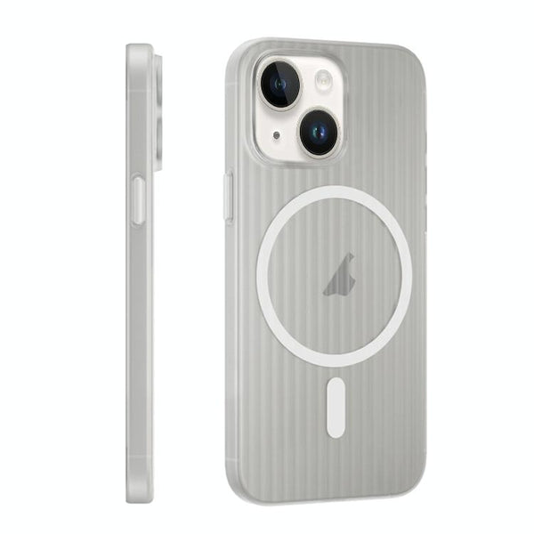 For iPhone 14 PC Corrugated MagSafe Phone Case(White)