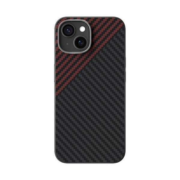 For iPhone 14 Plus ABEEL C Carbon Fiber Series 6D Micro Relief MagSafe Phone Case(Black Red)