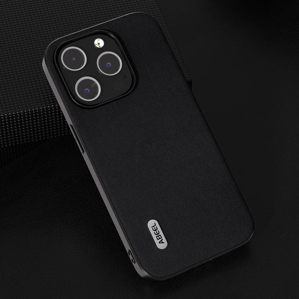 For iPhone 14 Plus ABEEL Genuine Leather Xiaoya Series Phone Case(Black)