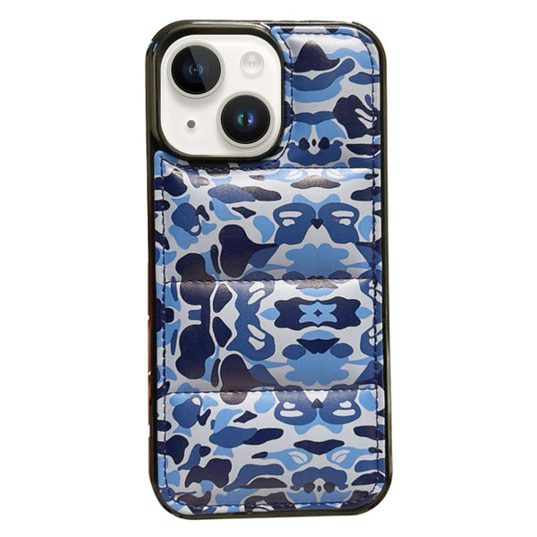 For iPhone 14 Plus Camouflage Eiderdown Airbag Phone Case(Blue-B)