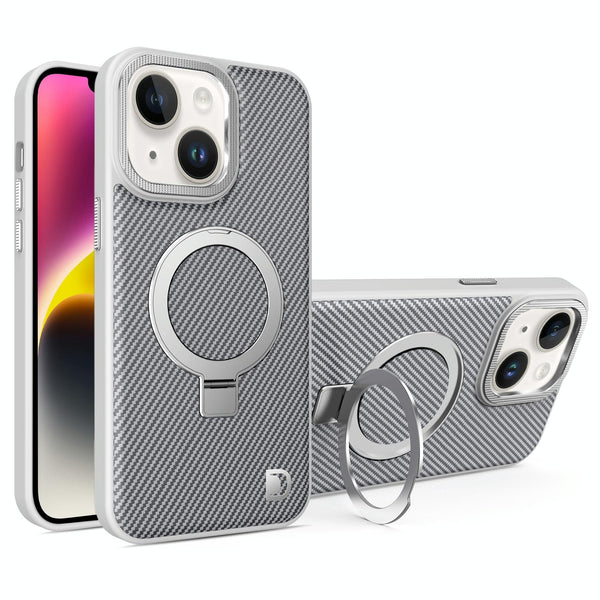 For iPhone 14 Plus Carbon Fiber MagSafe Holder Phone Case(Grey)