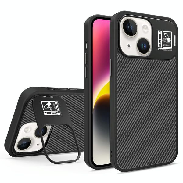 For iPhone 14 Plus Folding Holder Carbon Fiber MagSafe Phone Case(Black)