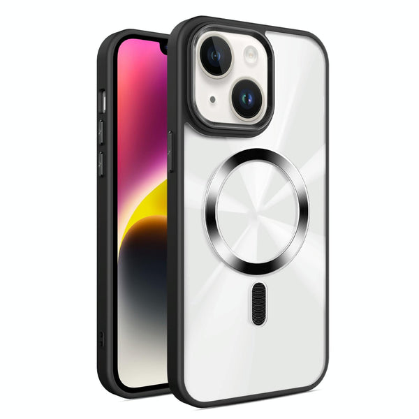 For iPhone 14 Plus Glaring CD Texture MagSafe Phone Case(Black)