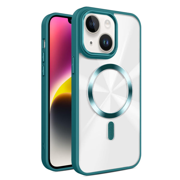 For iPhone 14 Plus Glaring CD Texture MagSafe Phone Case(Deep Green)