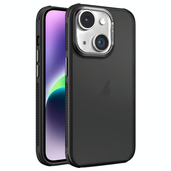 For iPhone 14 Plus Hardware Side Cooling Skin Feel Frosted Metal Lens Frame Phone Case(Black)