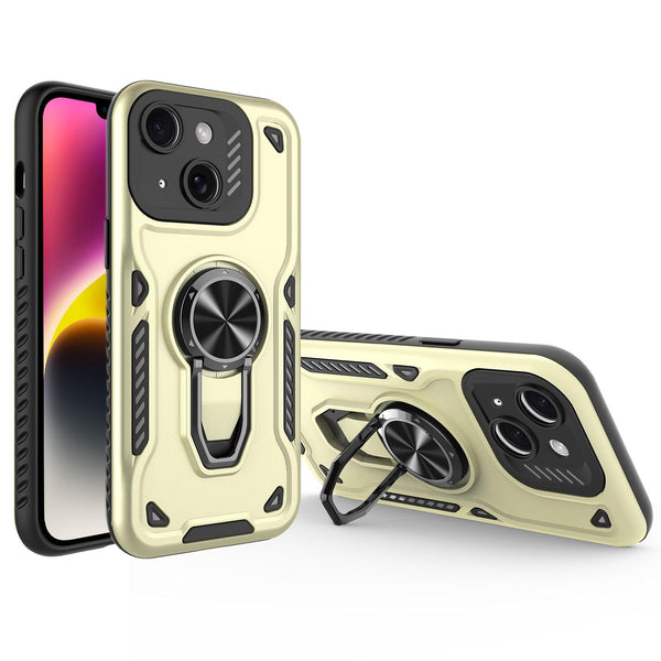 For iPhone 14 Plus Metal Rotating Bracket TPU + PC Magnetic Phone Case(Beige)