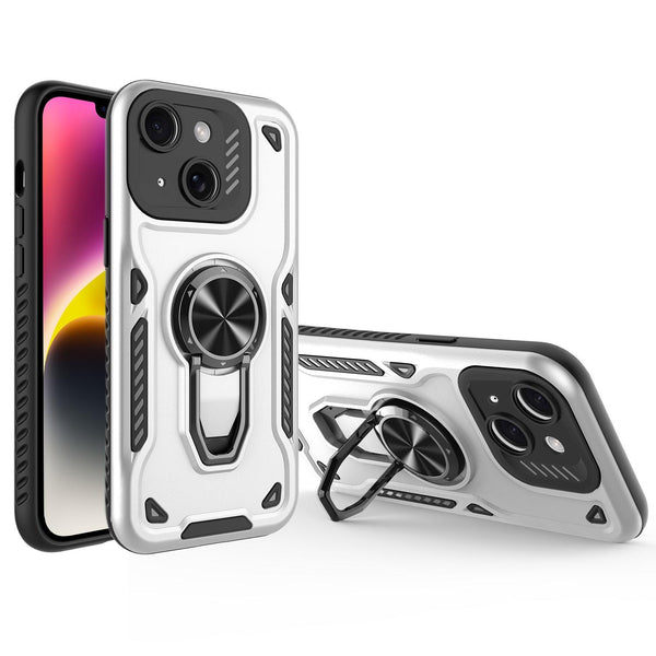 For iPhone 14 Plus Metal Rotating Bracket TPU + PC Magnetic Phone Case(White)