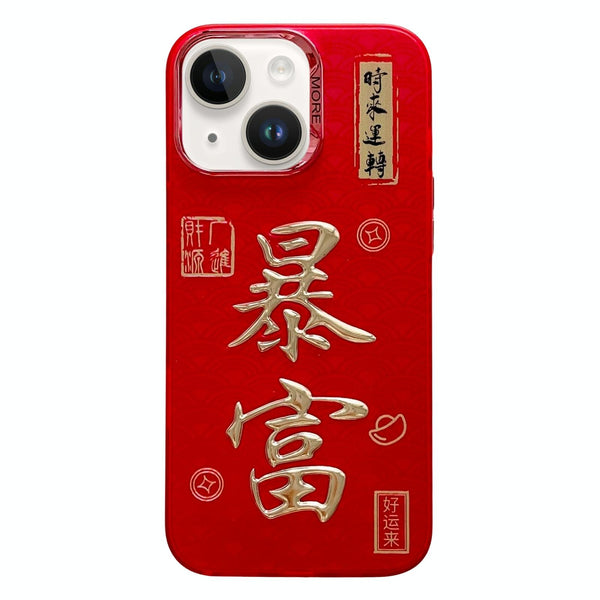 For iPhone 14 Plus New Year Design 3D Gold Stamping IMD Phone Case(Wealthy)