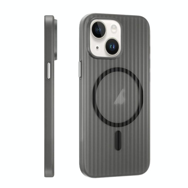 For iPhone 14 Plus PC Corrugated MagSafe Phone Case(Black)
